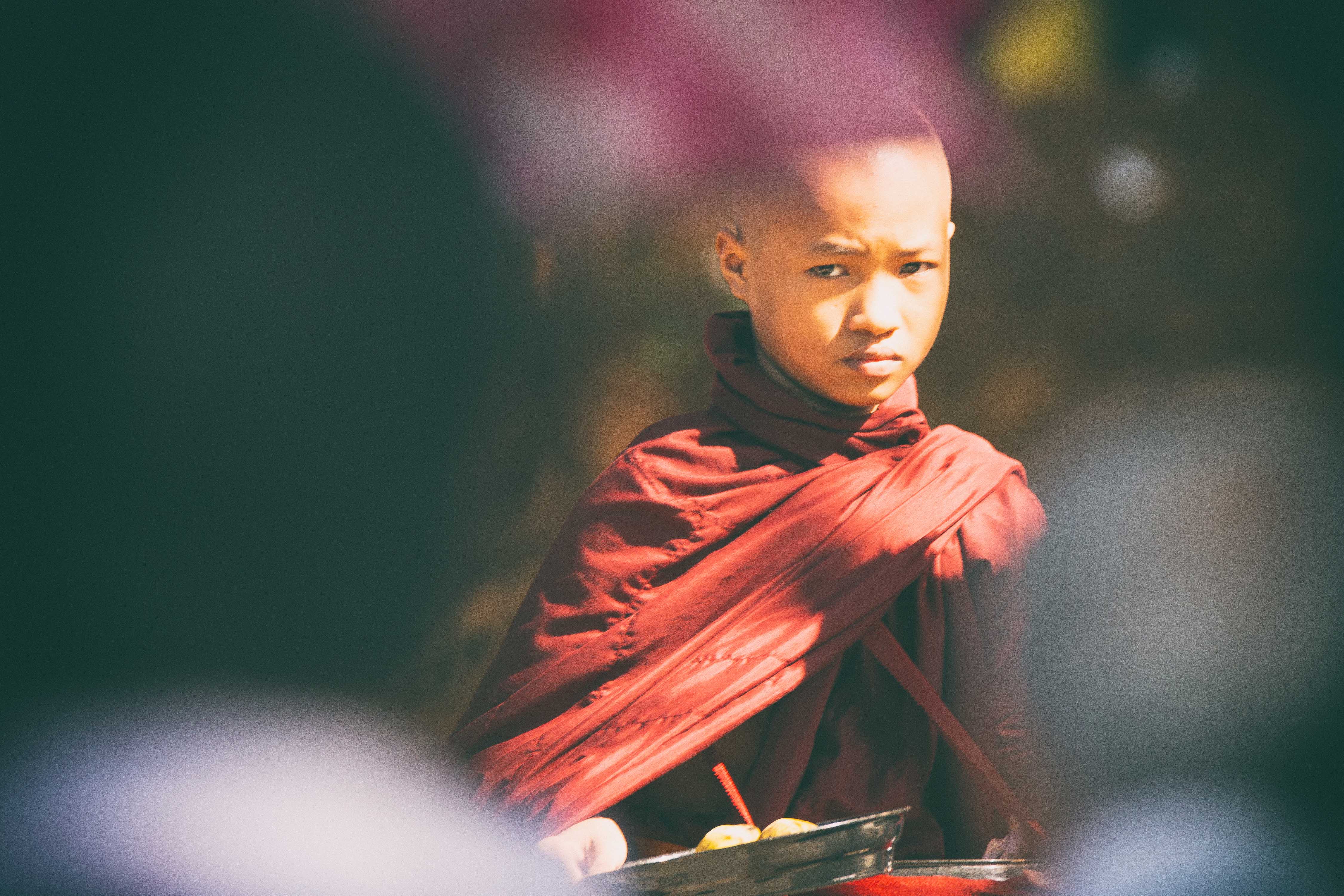 I intrigued by the boys gaze and the out of focus foreground. What is distracting me is the metal plate (?) at the bottom. Is he collecting food, distributing it or having his lunch? It raises questions that take me away from a good portrait. Perhaps a crop just above the plate would improve things?? Ive just used the Windows cropping tool on my PC at work and found a square crop works for me. Hope this helps